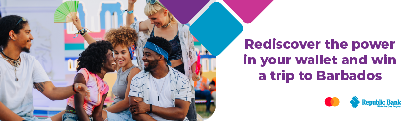 During the period August 25 – October 17, 2025, every purchase* of US$25 or more with your Republic Bank Mastercard will earn you a chance to win the Grand Prize of a VIP trip for 2 persons to Barbados for The Food and Rum Festival in November!